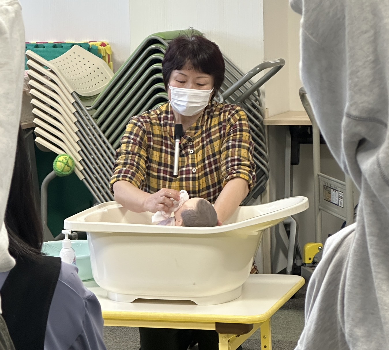 また、沐浴の実演、妊婦ジャケット体験、新生児の人形で抱っこ体験もしてもらいました♪